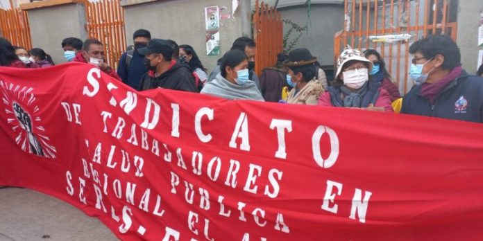 El primer piquete fue instalado en la Federación de Trabajadores en Salud de El Alto, quienes señalaron que no levantarán esta medida hasta que sus compañeros despedidos sean restituidos a sus fuentes laborales.