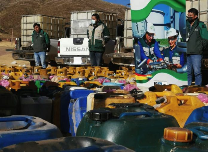 El viceministro de Lucha Contra el Contrabando, David Vargas, informó que efectivos del Regimiento Lanza hicieron la entrega de 6.000 litros de combustible y una cantidad de 100 garrafas que iban a ser trasladadas al vecino país de Perú.