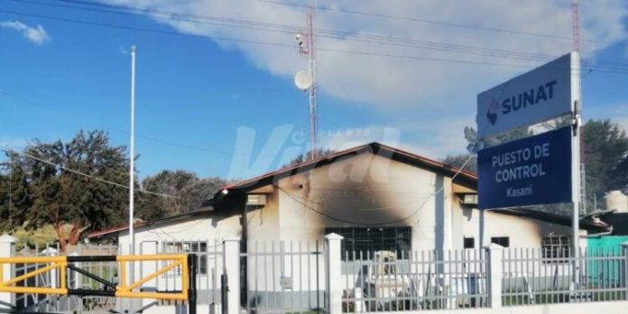 La institución informó que manifestantes prendieron fuego a una oficina de la Superintendencia Nacional de Aduanas y de Administración Tributaria (Sunat) y a un puesto de migraciones en Yunguyo, localidad situada a un par de kilómetros de Bolivia.