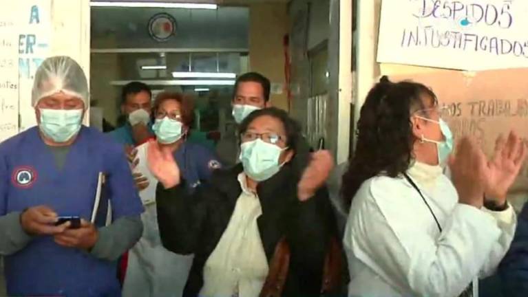 “Se paraliza la atención, pedimos disculpas a la población y pedimos a las autoridades que reconsideren de manera directa nuestro pedido”, demandó el trabajador en salud, que estaba junto a otro grupo con carteles en mano, y que protestaba por los “despidos injustificados”.