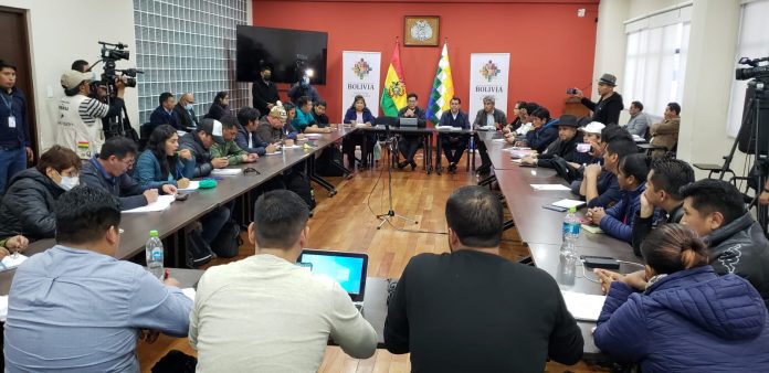“Nos hemos sentado al diálogo en donde hemos dejado dos propuestas, uno que sigamos debatiendo punto por punto o nosotros hagamos llegar una propuesta para que la analicen y nos hagan conocer la contrapropuesta. Han aceptado el segundo punto, con el que nosotros vamos a hacer llegar en el transcurso de horas la propuesta de solución del conflicto”, indicó el ministro de Educación, Édgar Pary.