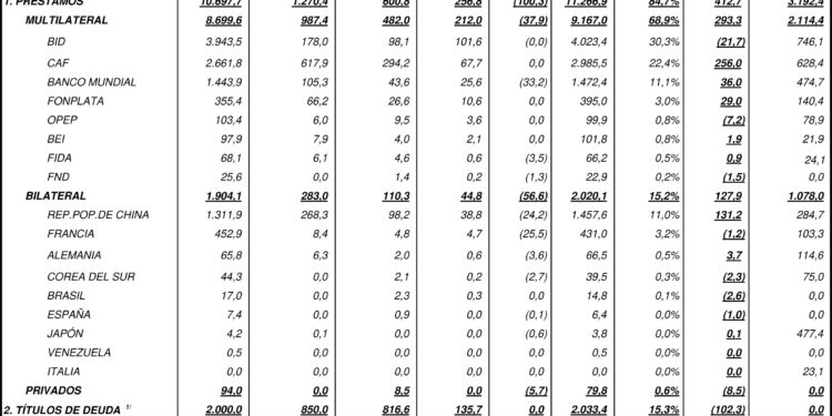 En el primer cuatrimestre del año, el país recibió 208 millones de dólares de créditos contratados, pero se pagaron más de 400 millones en servicio de deuda, un flujo negativo de divisas, sostuvo.