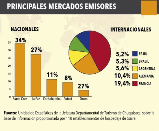 A la luz de estas cifras, queda claro que los extranjeros permanecen más tiempo y gastan más dinero en Sucre, pero, en número, son casi tres veces y medio menos que los nacionales.