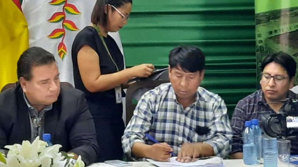 El director nacional del SENARECOM, Mauricio Mamani, llegó hasta Trinidad para firmar el convenio intergubernativo.