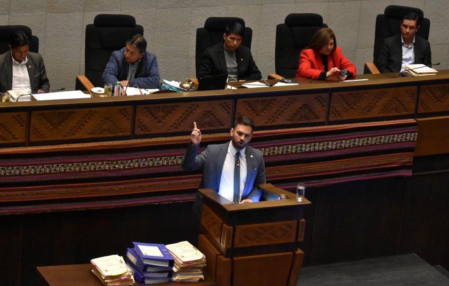 “Comunico a usted que la sesión de Asamblea Legislativa Plurinacional para la verificación del acto de interpelación al referido Ministro de Estado ha sido prevista para el 18 de octubre de 2023 a horas 14.30, en la sala de sesiones del nuevo edifico de la Asamblea” (sic), se lee en parte de la carta que envío Choquehuanca al presidente de la Cámara de Diputados, Jerges Mercado.