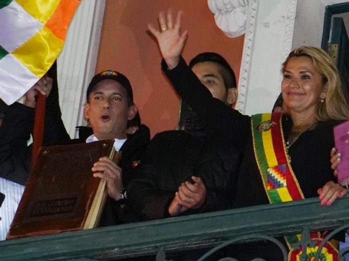 12 de noviembre de 2019. Balcón del Palacio de Gobierno de la plaza Murillo. Luis Fernando Camacho, el cívico, festeja junto a la presidenta transitoria Jeanine Áñez. Él sujeta la Gran Biblia con la cual llegó a la ciudad de La Paz para dar los “santos óleos” al gobierno de Evo Morales.