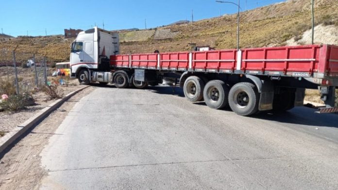 Las federaciones de transporte pesado de Oruro realizan desde este lunes un paro con bloqueo de carreteras, hasta lograr la liberación de sus compañeros que fueron detenidos la semana pasada por la fuerza antidroga porque estaban transportando 63 kilos de marihuana.