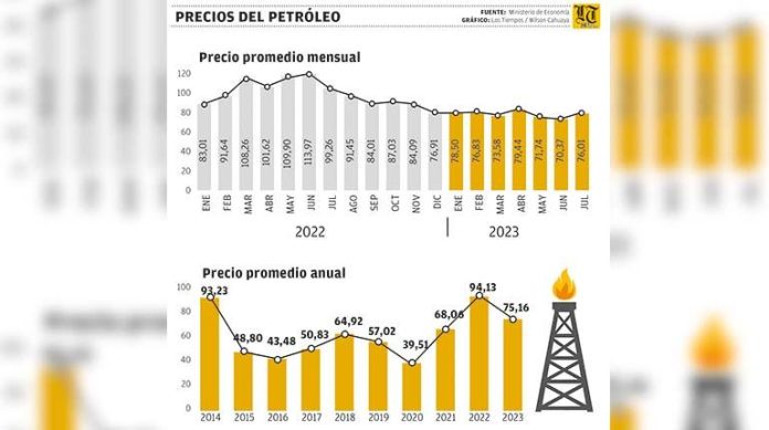 Explicó que en 2022 el precio del barril de petróleo estuvo en un promedio de 94 dólares; sin embargo, para 2023 el promedio bajó a 75 dólares.