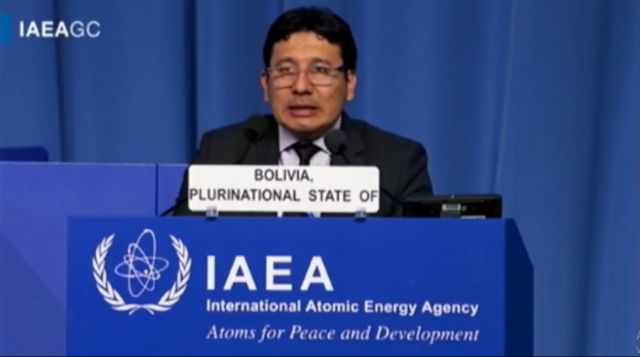 El Gobierno boliviano, a través del ministro de Hidrocarburos y Energías, Franklin Molina Ortiz, expuso este lunes los avances del Programa Nuclear Boliviano en la Sexagésima Séptima Reunión Ordinaria de la Conferencia General del Organismo Internacional de Energía Atómica (OIEA), que se desarrolla en Viena (Austria).