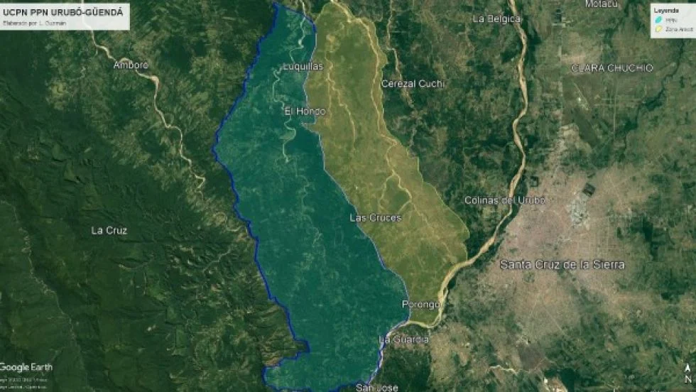 Cabe recordar que la Ley Departamental prohíbe «toda obra, actividad o proyecto de infraestructura que tienda a modificar el cauce o flujo natural y la cuenca de los ríos ubicados en la Unidad de Conservación de Patrimonio Natural Guendá- Urubó», justificando que los acuíferos en la zona proveen el 60% del agua consumida por los cruceños.
