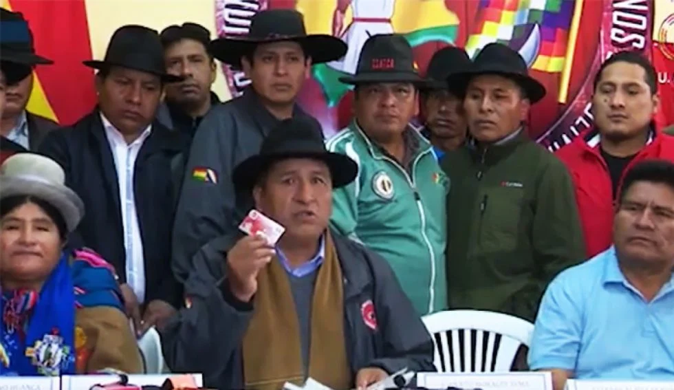 Por su parte, Lucio Quispe, secretario ejecutivo de la Confederación Sindical Única de Trabajadores Campesinos de Bolivia (Csutcb), criticó a Evo Morales por haber calificado a algunos dirigentes de ilegales y lamentó que al expresidente «se le hayan subido los humos».