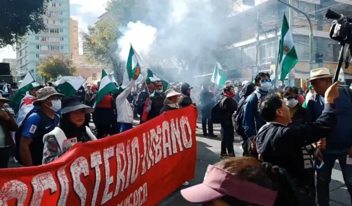 Una marcha de magisterio urbano de Bolivia, desarrollado la tarde de este lunes en el centro de la ciudad de la Paz terminó en un enfrentamiento con la Policía que tuvo que utilizar agentes químicos para dispersarlos.