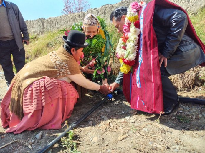 “Es el trabajo del presidente Luis Arce, el cual está pensando en hacer frente al cambio climático y favorecer al sector productivo, es por eso que, en el caso de la comunidad de Uypaca, se ha trabajado en la implementación del sistema de riego por aspersión para el mejoramiento de la papa y zanahoria”, señaló.