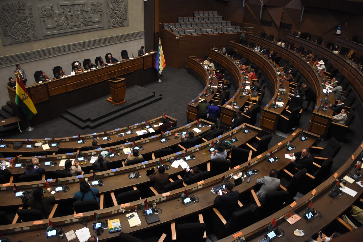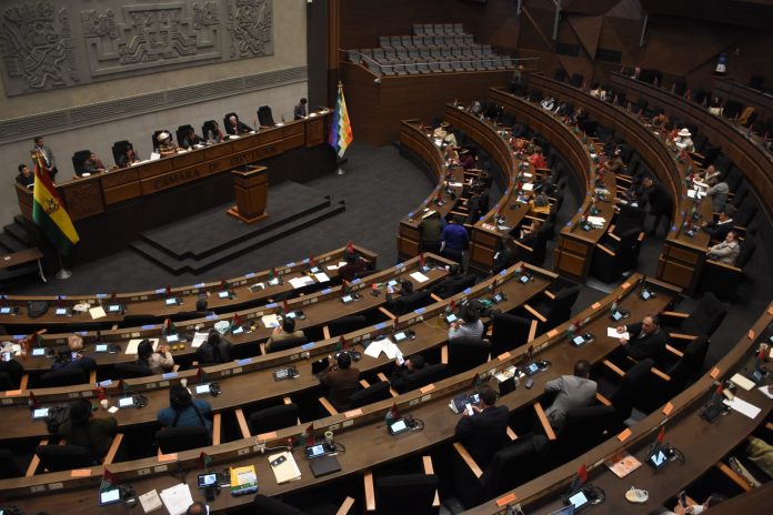 Horas antes, un nuevo bochorno se registró en el hemiciclo, lo que obligó al presidente de esa instancia, Israel Huaytari (MAS), a declarar un cuarto intermedio por una hora.