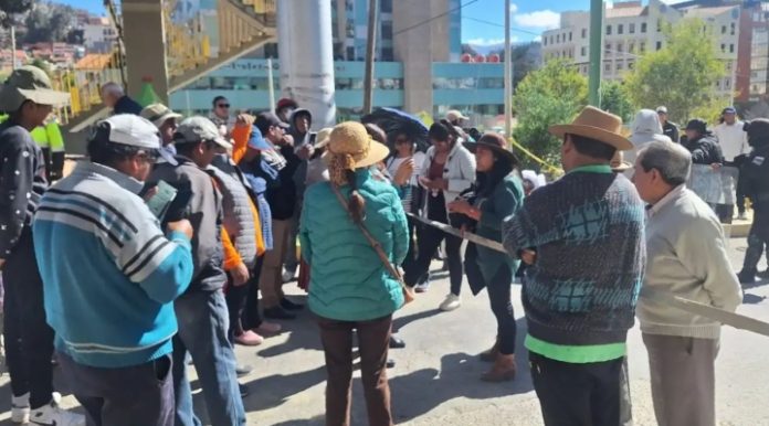 Vecinos afectados por la mazamorra en la zona de Bajo Llojeta denuncian el lento avance de personal de la Alcaldía y la empresa Kantutani y por ello decidieron bloquear el acceso al cementerio de Los Andes.
