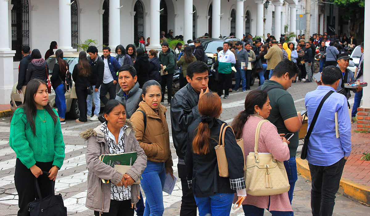 La escena llamó la atención de vecinos y transeúntes. La fila rodeaba el edificio, avanzando por la calle Sucre y doblando hacia René Moreno, cubriendo al menos cuatro cuadras. Entre los postulantes se veían profesionales de distintas áreas: ingenieros, abogados, contadores, auxiliares y choferes. Muchos llevaban carpetas bajo el brazo y rostros de esperanza.