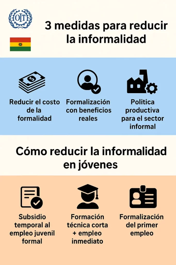 Al 1er semestre 2025, Bolivia ocupa el primer puesto de informalidad laboral con un 82,3%. Al otro extremo, se encuentra Uruguay con una tasa del 22,3%. La OIT indica que el aumento de la incidencia de la informalidad en Argentina, Bolivia y Ecuador fue el resultado de una caída en la cantidad de puestos formales junto con un aumento de las ocupaciones informales.