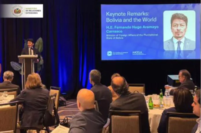 Durante su intervención en el espacio denominado Outlook on the Americas, organizado por la U.S. Chamber of Commerce, Aramayo explicó el nuevo enfoque de desarrollo impulsado por el gobierno del presidente Rodrigo Paz.
