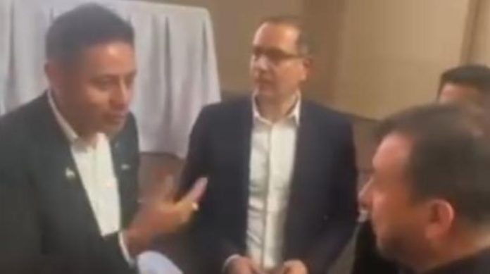 Videos compartidos en las redes sociales muestran el momento en el que Lara increpa a ambas autoridades del sector de hidrocarburos y, en primer lugar, les exige aclarar cuándo podrán descargar las más de 700 cisternas varadas en la refinería de Palmasola.