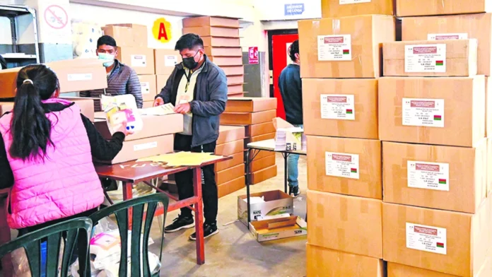 Maletas electorales. En los nueve tribunales electorales departamentales ya comenzó la distribución de las 33.439 maletas electorales para un número similar de mesas de sufragio.