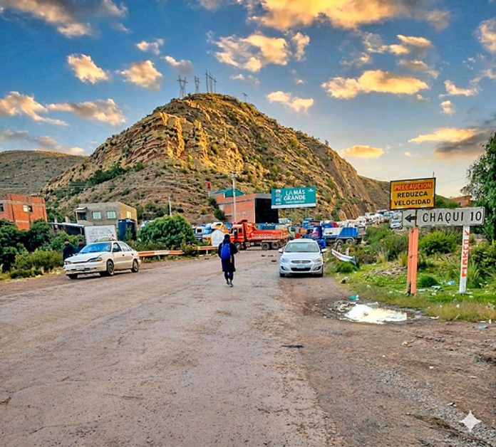 El bloqueo del camino Potosí-Sucre, a la altura del cruce Chaquí, en demanda de que la Asamblea Legislativa Departamental (ALD) de la Villa Imperial apruebe la tercera adenda del proyecto de asfaltado del camino Cruce Chaquí-Colavi.