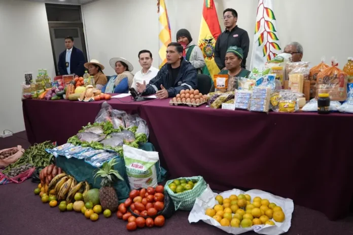 El ministro de Desarrollo Productivo, Rural y Agua, Oscar Mario Justiniano, y el viceministro de Comercio y Logística Interna, Gustavo Serrano, realizaron este martes el lanzamiento oficial de la primera versión de la feria “Bolivia Produce”, iniciativa destinada a acercar la producción nacional directamente al consumidor final, asegurando calidad y precios justos.