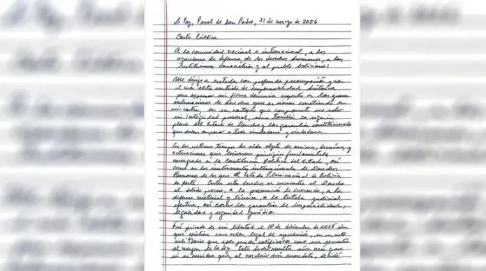 El comunicado surge después de que Arce, a través de una carta, denunció que es un “preso político” y que sufre la “tortura psicológica”, por hechos como la vulneración de sus derechos, el encierro en un sin condiciones mínimas de habitabilidad y sometido a interrupciones constantes para la toma de fotografías.