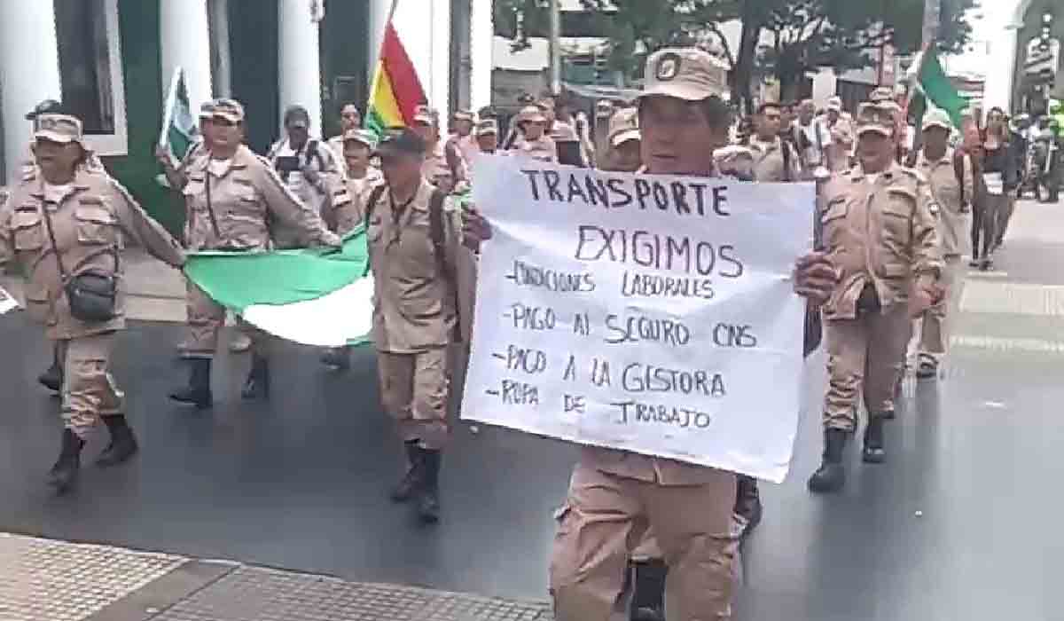Durante la movilización, los manifestantes reclamaron el pago de aportes a la seguridad social, incluyendo la Caja Nacional de Salud (CNS), la Gestora Pública y otros beneficios pendientes que, según señalaron, no han sido cumplidos.