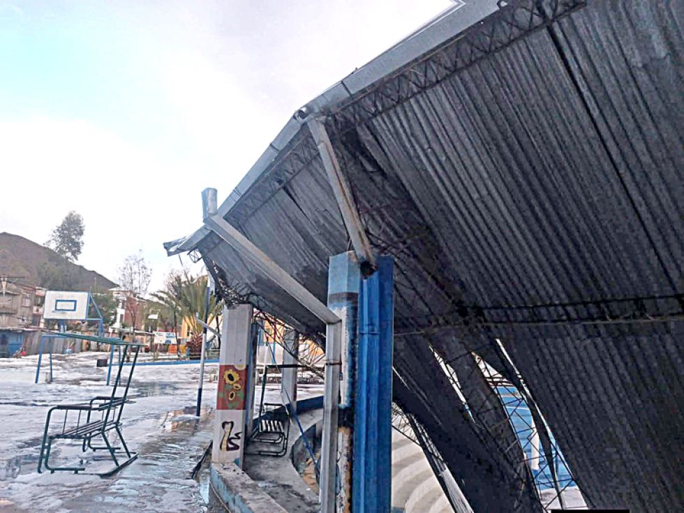 Una granizada causó la caída del techo de una unidad educativa y afectó a decenas de familias en la comunidad de Huajchilla, en el departamento de La Paz, donde se reportó la pérdida de producción de hortalizas y flores.